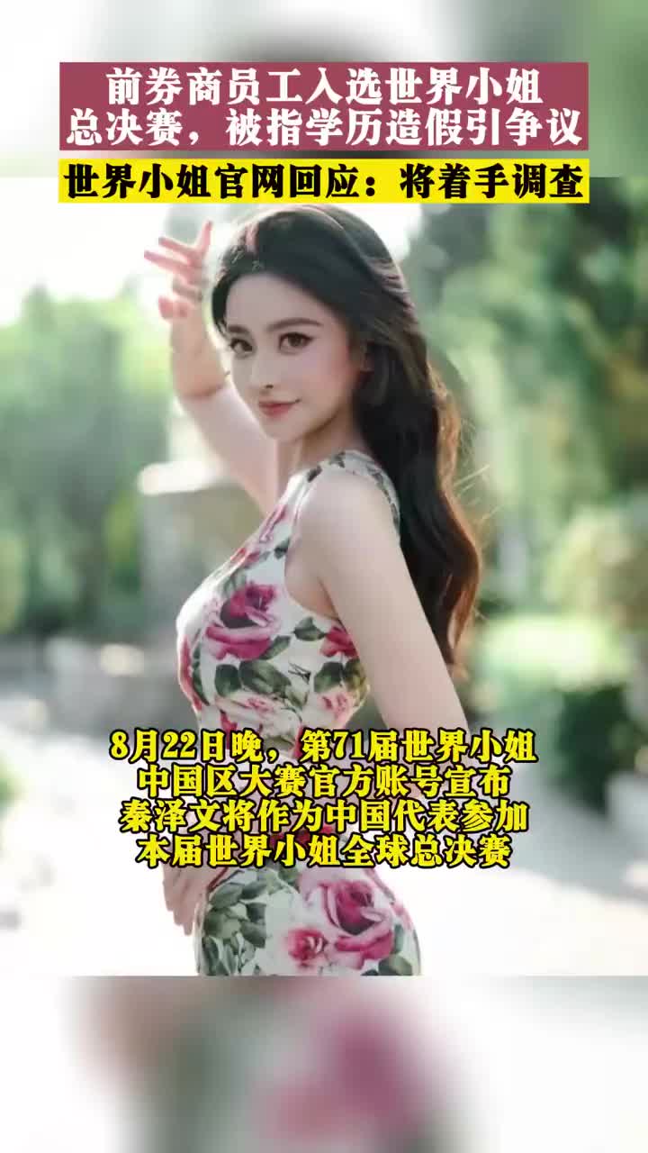 美女券商分析师闯进世界小姐全球总决赛一事,还在发酵。从“券商跨界逐梦世界小姐”,到“未进前三却成功替补”,再到“学历造假质疑”,代表中国区参加世界小姐全球总决赛的秦泽文争议不断。
