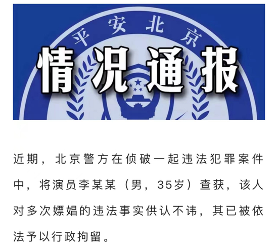据“平安北京”消息,近期,北京警方在侦破一起违法犯罪案件中,将演员李某某(男,35岁)查获,该人对多次嫖娼的违法事实供认不讳,其已被依法予以行政拘留。记者通过权威渠道了解到,李某某为李易峰。