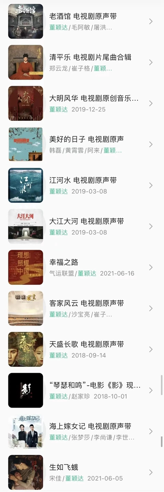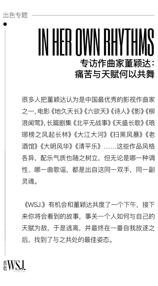 类似的误解,在董颖达从事影视配乐作曲这一职业的近十年间,可谓是屡屡遭逢了——不仅是名字会让人混淆了对其性别认知的界限,她的配乐作品的品相也如是:电影《地久天长》《六欲天》《诗人》《影》《柳浪闻莺》,长篇剧集《北平无战事》《天盛长歌》《琅琊榜之风起长林》《大江大河》《扫黑风暴》《老酒馆》《大明风华》《清平乐》……这些作品风格各异,配乐气质也随之树立,有的意蕴婉转,有的恢弘开阔,有的风风雨雨,有的影影绰绰……但无论是哪一种调性、哪一曲歌谣,都是出自这同一只手,同一副灵魂。