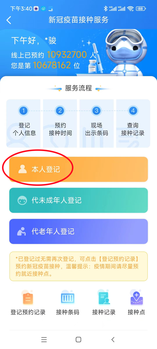 在线进行预约登记