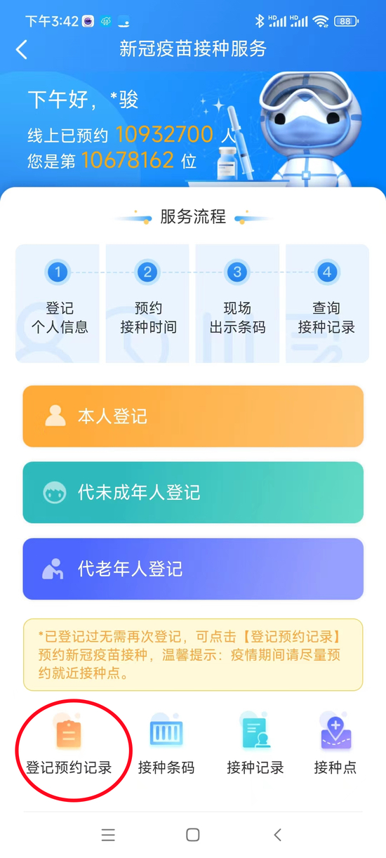 点击登记预约记录