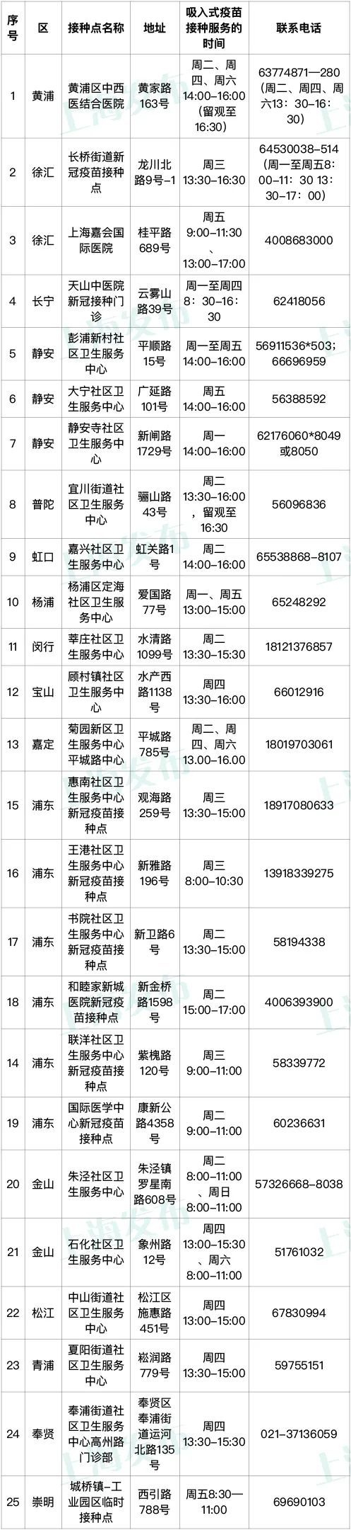 上海各区疫苗接种点开始启动