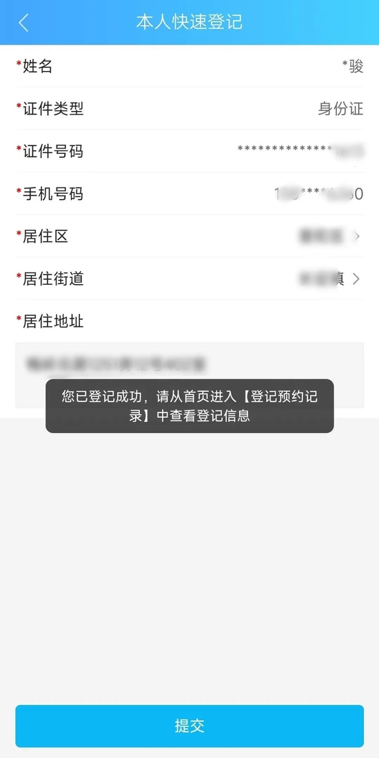 点击相应的社区选择,选择您希望前往的日期、方便的时间,点击提交,确认您的个人信息,点击提交后,您就可以提交成功了。