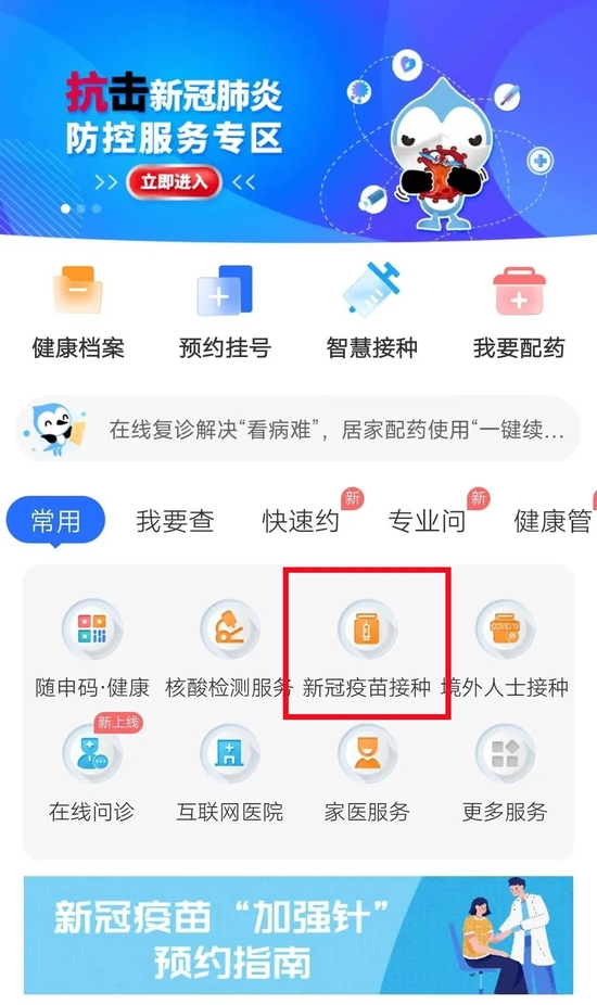 找到新冠疫苗接种,点击进入