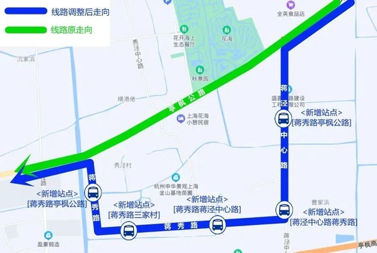 新增站点:蒋泾中心路亭枫公路、蒋泾中心路待泾村村委会、蒋泾中心路蒋秀路、蒋秀路蒋泾中心路、蒋秀路三家村、蒋秀路亭枫公路。
