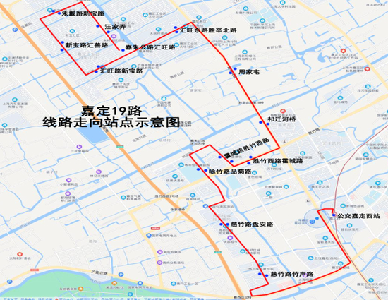 为配合公交嘉定北站搬迁,填补慈竹路(竹笛路-平城路)的公交空白,自2022年10月31日首班车起,嘉定19路调整走向、站点,具体如下: