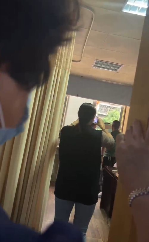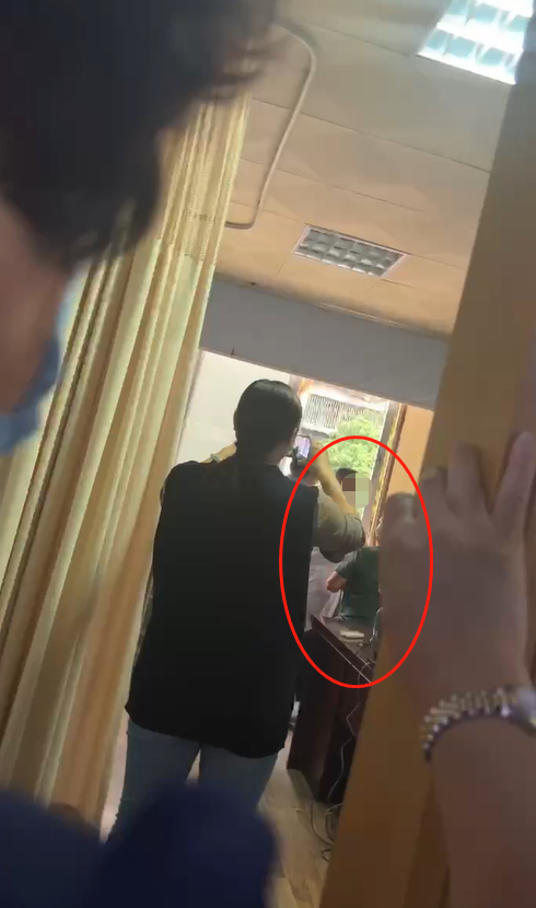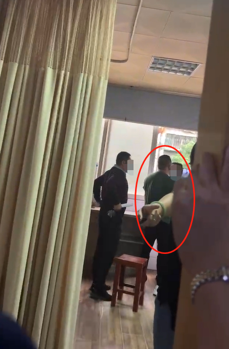 另一段视频显示,疑似会诊室内,一名身穿医务服、戴口罩的男子与两名男子发生言语争执,其中一名绿衣男子与其大声争吵,还有一名女子一边拍照一边参与争执。