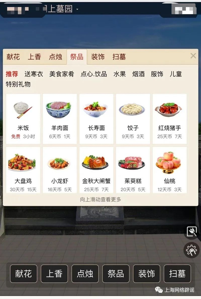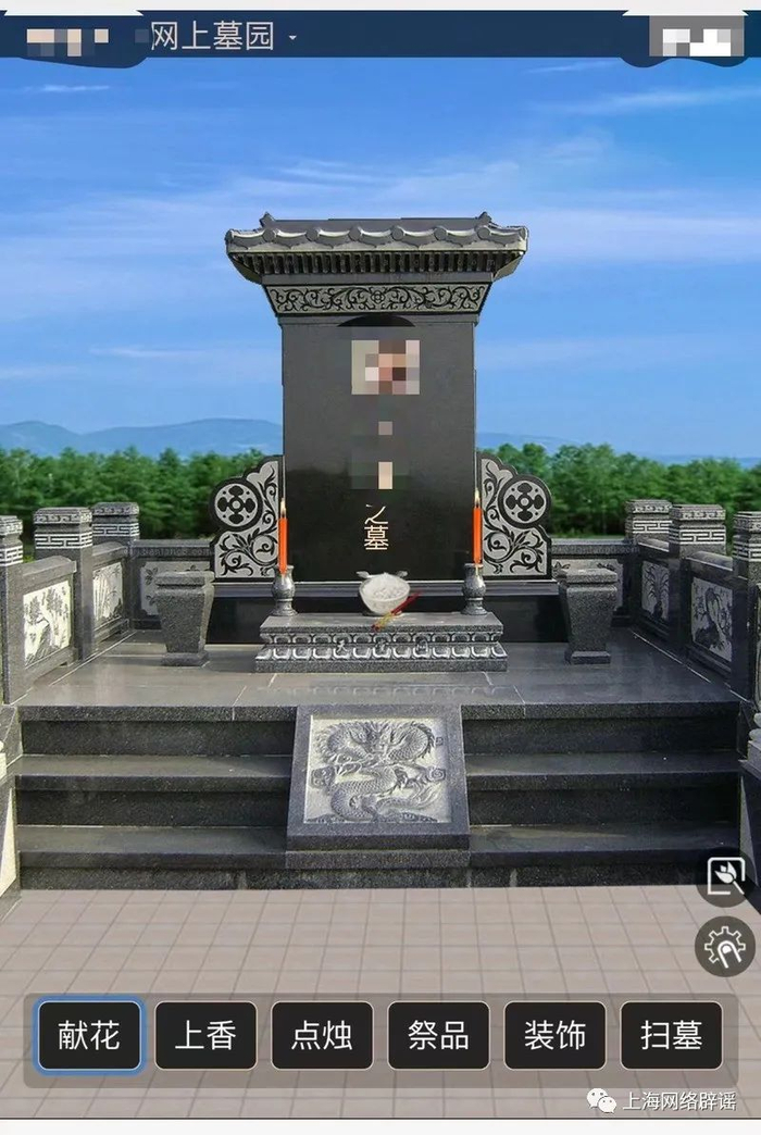 记者了解到,目前上海没有官方的线上扫墓平台,不过有线下陵园已开发了网上祭祀服务,市民可以关注官方陵园发布的信息,选择网上祭祀服务。例如,上海卫家角息园提供网上祭奠服务,公众可以关注“卫家角息园”微信公众号选择。在这里建立网上纪念馆有门槛,除了需提供逝者基础信息之外,还要求用户提供逝者安葬证照片和逝者安葬位置,审核通过后方可公开展示。