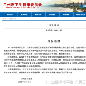 据兰州市卫健委官网11月25日通报,11月24日1时许,兰州核子华曦实验室工作人员误将个别核酸检测异常人员名单信息录入阴性人员信息包中上传至工作系统,使个别待转运人员健康码显示核酸检测阴性。兰州卫健委表示,将对兰州核子华曦实验室予以严肃处理。