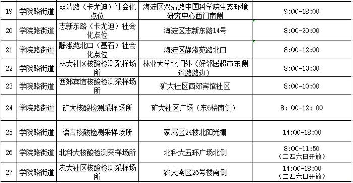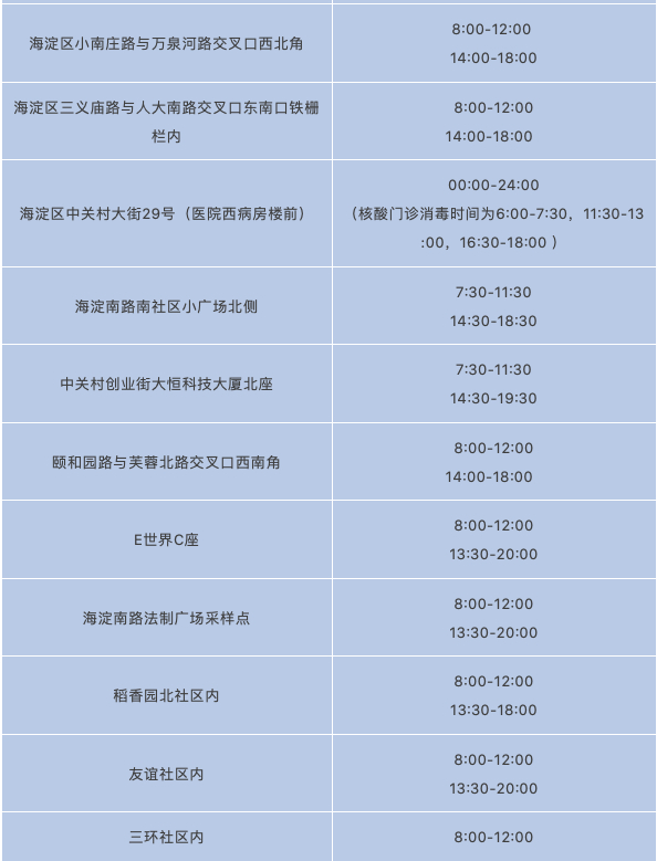 12月4日,海淀区海淀街道公布核酸检测点最新地址: