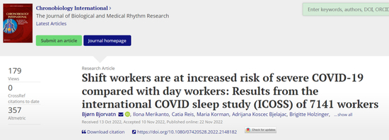 近日,一项由挪威卑尔根大学、中国香港中文大学发表于美国《国际时间生物学(Chronobiology International)》期刊的研究显示,经常熬夜、上夜班,虽然不会增加感染新冠的风险,但“阳”后的重症风险显著提高。