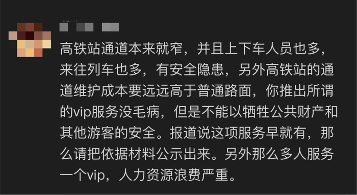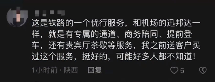 不过,也有网友表示,部分高铁站存在该服务,与机场的商务贵宾类似。