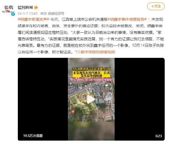 对于警方通报,胡鑫宇家属发声:都是一些推测