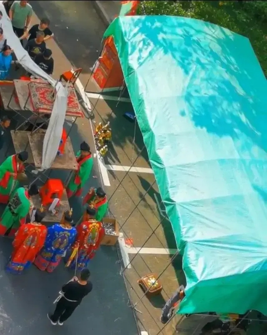 随后,记者走访了小区所属的新曹杨社区居委会。社工表示,小区内办丧事一般都会向社区老龄办申请,在家门口举行部分丧事活动确实是当地的风俗习惯。