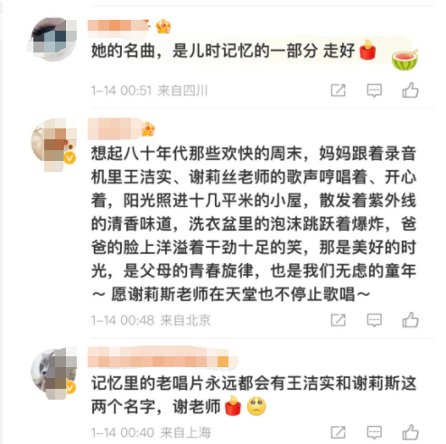 谢莉斯与王洁实的组合是一代人的记忆。王洁实也在个人社交平台发文悼念友人:“深切悼念我的同事、多年合作伙伴愿谢莉斯老师。愿天堂没有病痛,一路走好!”
