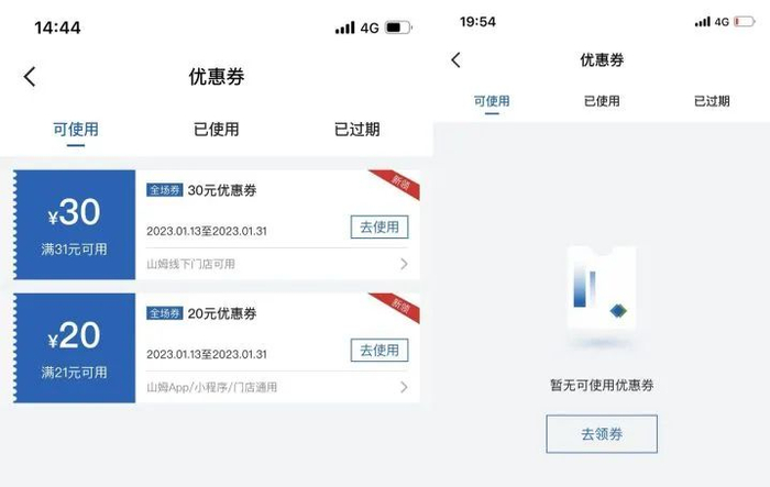 从1月13日开始,就有不少网友在社交平台吐槽,下午收到山姆会员店派送的优惠券,本来想第二天去用,结果晚上发现券没了!