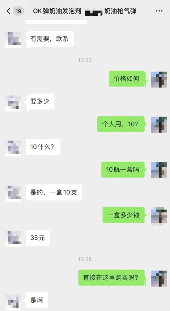 在杭州从事咖啡行业多年的商家陈超(化名)向记者透露,小分装瓶的一氧化二氮在海外市场很流行,自己曾经就是某海外品牌的代理商,“以前很多咖啡店会用一氧化二氮来提高奶油发泡速率,用于制作雪顶咖啡等,如今很少有人用了,更多店家更愿意使用传统的打蛋器。”