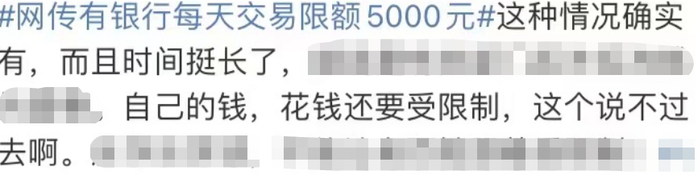 银行卡每天交易限额5000元?网友:用自己的钱也要被限?回应