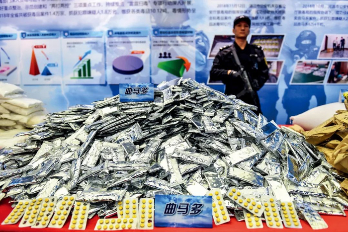 2019年1月22日,广东省公安厅展示一起网络贩卖曲马多案件的涉案物品。摄影/本刊记者 陈骥旻
