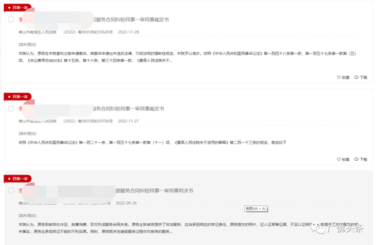 除了上述案件外,另外三起案件都以撤诉告终。其中,在广州市番禺区人民法院和佛山市南海区人民法院立案的两起案件,因李某未按时预交案件受理费,按自动撤诉处理;在佛山市南海区人民法院立案的另一起案件,由李某本人主动向法院申请撤诉。