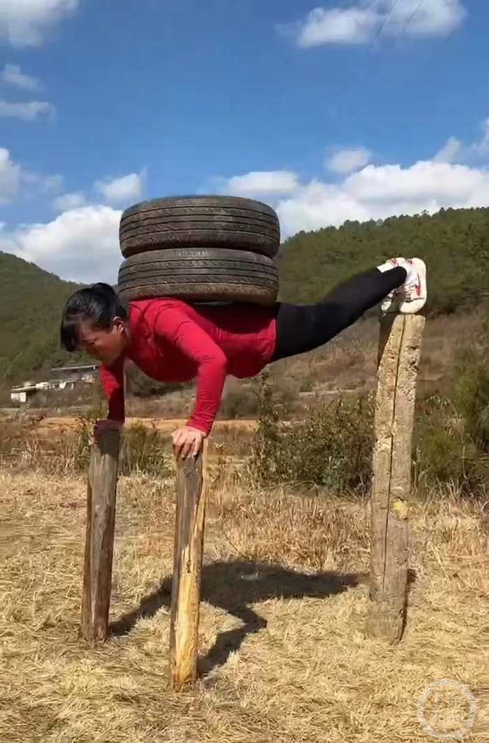 1分钟内,徒手连劈8块砖头;单脚站立在2米高,横截面不足巴掌大的独木桩上,环抱近百斤重的圆木,依旧稳如磐石;徒手掀翻400斤重的大型铲车轮胎,用时仅20秒……云南95后女孩杨慧因为挑战功夫片里的各种高难度动作,在网上走红,被许多网友称为“女版李小龙”。8日,杨慧回应上游新闻(报料邮箱baoliaosy@163.com)记者称,所有高难度动作,自己都是从武侠动作片里模仿自学而来,多年反复琢磨训练,为此受了很多伤,所以她并不建议普通人模仿。