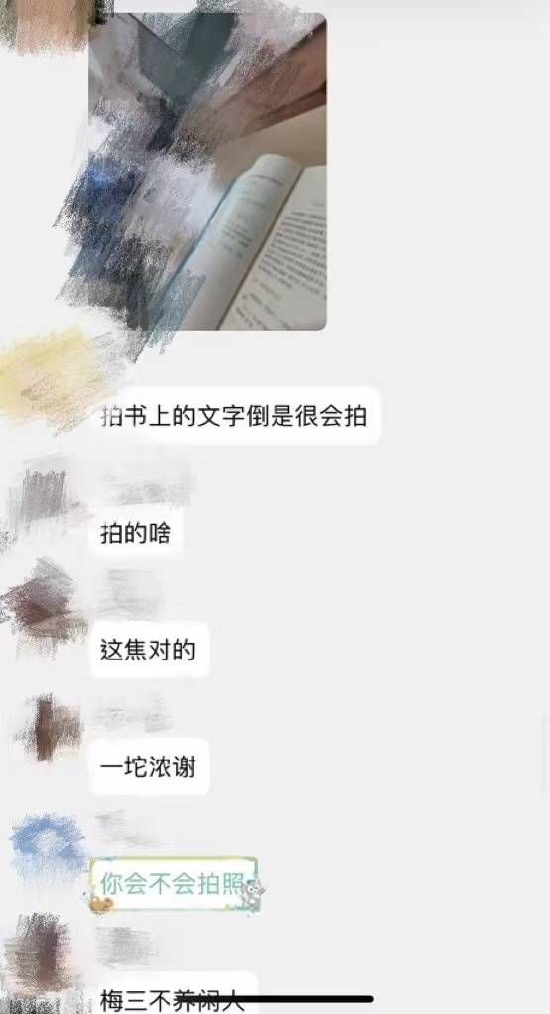 由于贺某当时所在座位距离该女生较远,并没有拍到照片。在“无图无证据”的情况下,群聊中其他男生又多次催促贺某拍照,甚至有男生“出主意”,以“拍黑板上的题目”为掩饰,偷拍女生。