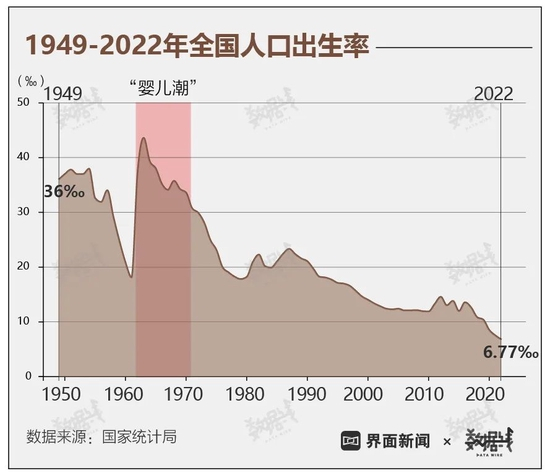 此外,“婴儿潮”人口正步入退休年龄。1963年是新中国成立以来出生率最高的一年,到2023年,这批“婴儿潮”人口年满60岁,退休高峰也逐渐开始。