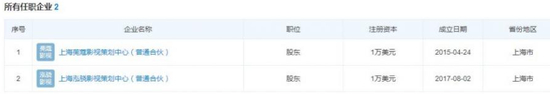 公开资料显示,目前窦骁(DOU SHAWN)名下关联上海蔸蔻影视策划中心(普通合伙)、上海泓骁影视策划中心(普通合伙)2家企业,其中后者已于2021年注销。