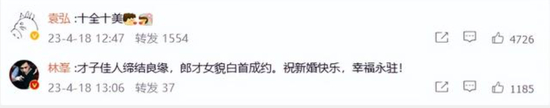 圈内明星好友们送上祝福,袁弘在评论区大赞“十全十美”,林峯写着:“才子佳人缔结良缘,郎才女貌白首成约。祝新婚快乐,幸福永驻!”