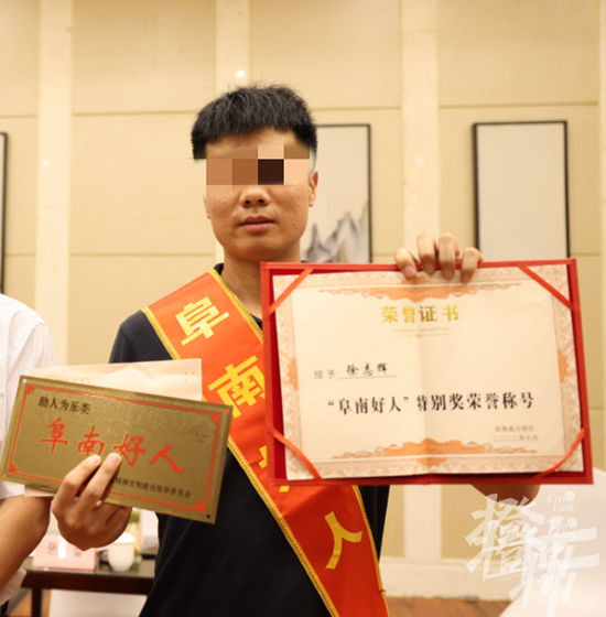 被媒体报道后,2022年7月13日,阜南县文明办授予徐志辉“阜南好人”特别奖荣誉称号。
