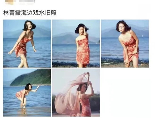 林青霞在上世纪90年代的青春旧照中,就有不少露背、吊带、深V的穿着。