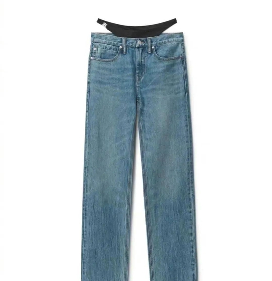 这条牛仔就是这么设计的,来自品牌alexanderwang,售价高达3800元。据悉,牛仔裤采用独特的“低腰时尚三明治”设计,乍一看似乎露出了衣服的边缘。