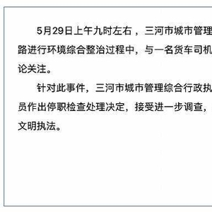 河北三河通报“城管打骂货车司机”:涉事人员停职