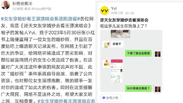 造谣女孩婚纱照道歉信疑遭贴吧删除