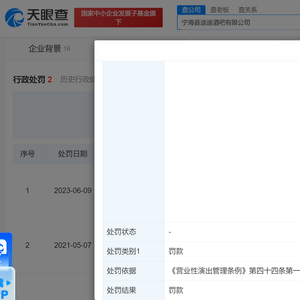 天眼查App显示,近日,宁海县迪迪酒吧有限公司因未经批准举办营业性演出,被宁海县文化和广电旅游体育局罚款5万元。