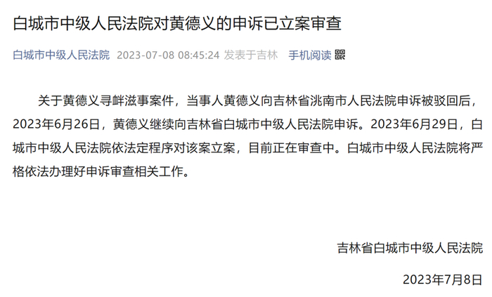 关于案件侦办问题,洮南市政府表示,案件在审理过程中,不便过多解释,但白城市中级人民法院已于6月29日对该案登记立案,目前正在审查中。
