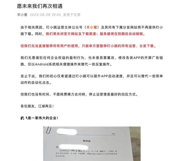其中,“叮小跳”运营主体公众号羊小蜜早在8月6日就表示,他们已经收到律师函。