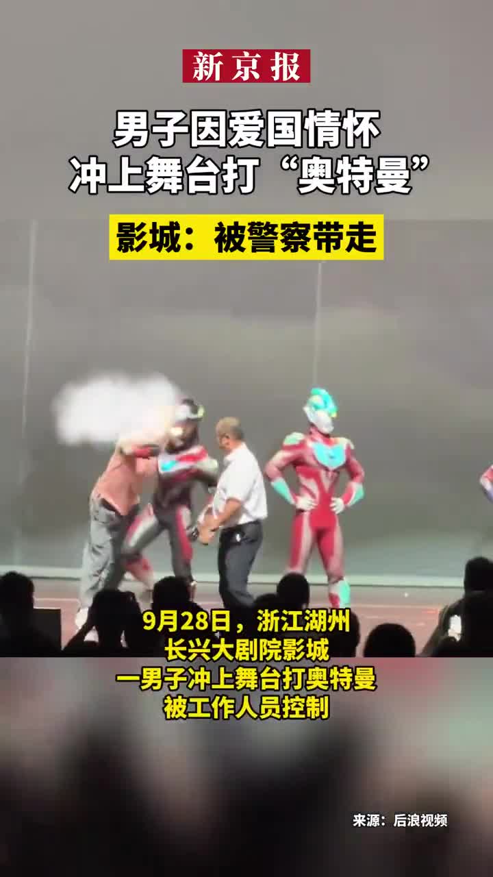 男子因爱国情怀冲上舞台打“奥特曼”,影城:被警察带走
