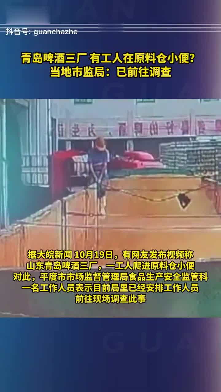 青岛啤酒三厂有工人往原料仓小便?当地监管部门回应正调查