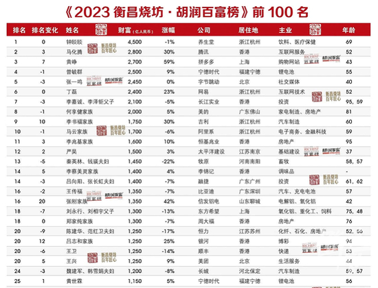 不过,还有11位富豪在2023胡润百富榜上有名,这11人中有3位还在百名之内。