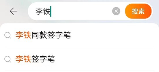 在淘宝平台查询可以发现,目前,“安全笔”在多家店铺均有销售,价格在4到15元不等。在淘宝搜索栏输入“李铁”发现,目前已有“李铁同款签字笔”词条,点击搜索,就会出现同款安全笔。