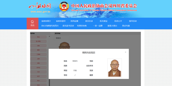 在四川省政协官网“委员列表”栏中,释照杰为宗教界委员,其简历中“姓名”“界别”分别显示为“释照杰”和“宗教”,包括“性别”“出生年月”“学历”“籍贯”在内的信息均没有介绍。