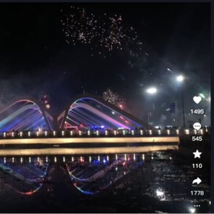 有网友发布视频称,有人在网红桥上烟花对战。图/视频截图