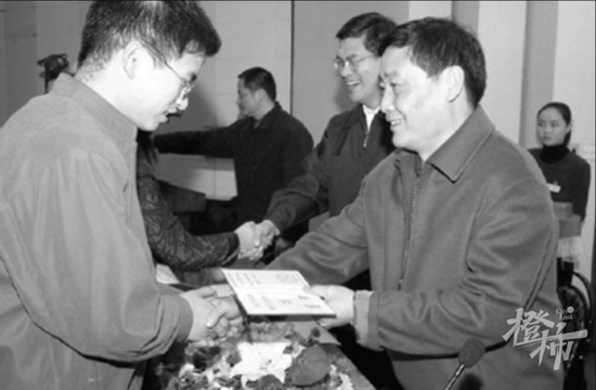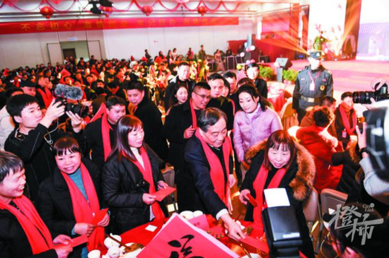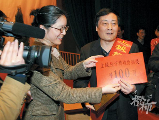 2003年2月25日,娃哈哈集团公司的老总宗庆后则从上城区政府手里领到了100万元的“大红包”,作为他对上城区经济贡献的特殊回报。摄影 步恩撒