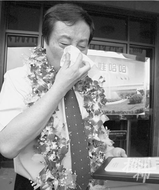 1992年4月28日,作为娃哈哈营养食品厂厂长的宗庆后由于发展企业经济有功,获得上城区10万元奖励。在表彰会上,杭州日报记者抓拍到了宗庆后流泪的照片。