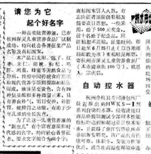 1988年,《杭州日报》上一则启事,请大家为新研制的营养液起个好名字,联系人留的是:宗庆后