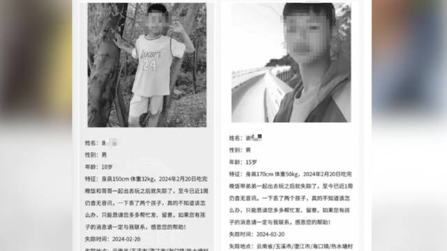 云南两兄弟失联一周均已身亡:分别为10岁和15岁