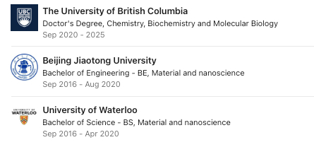 资料显示,雷震寰已经在加拿大哥伦比亚省待了五年。2016年,Lei在滑铁卢大学读本科,同时在北京交通大学做交换生。2020年开始在UBC大学读研究生,出事时正在攻读化学博士学位。