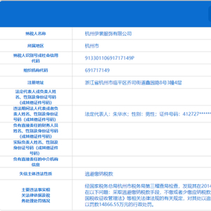 近日国家税务总局浙江省税务局发布信息,经国家税务总局杭州市税务局第三稽查局检查,发现杭州伊裳服饰有限公司在2014年1月至2021年6月期间,主要存在以下问题:采取逃避缴纳税款手段,不缴或者少缴应纳税款21237.93万元。