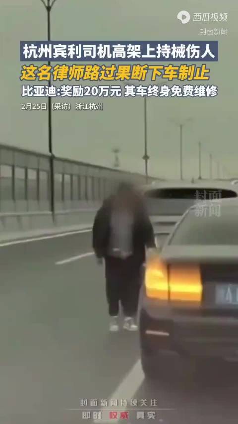 杭州宾利司机高架上持械伤人,这名律师路过果断下车制止,比亚迪:奖励20万元,其车终身免费维修